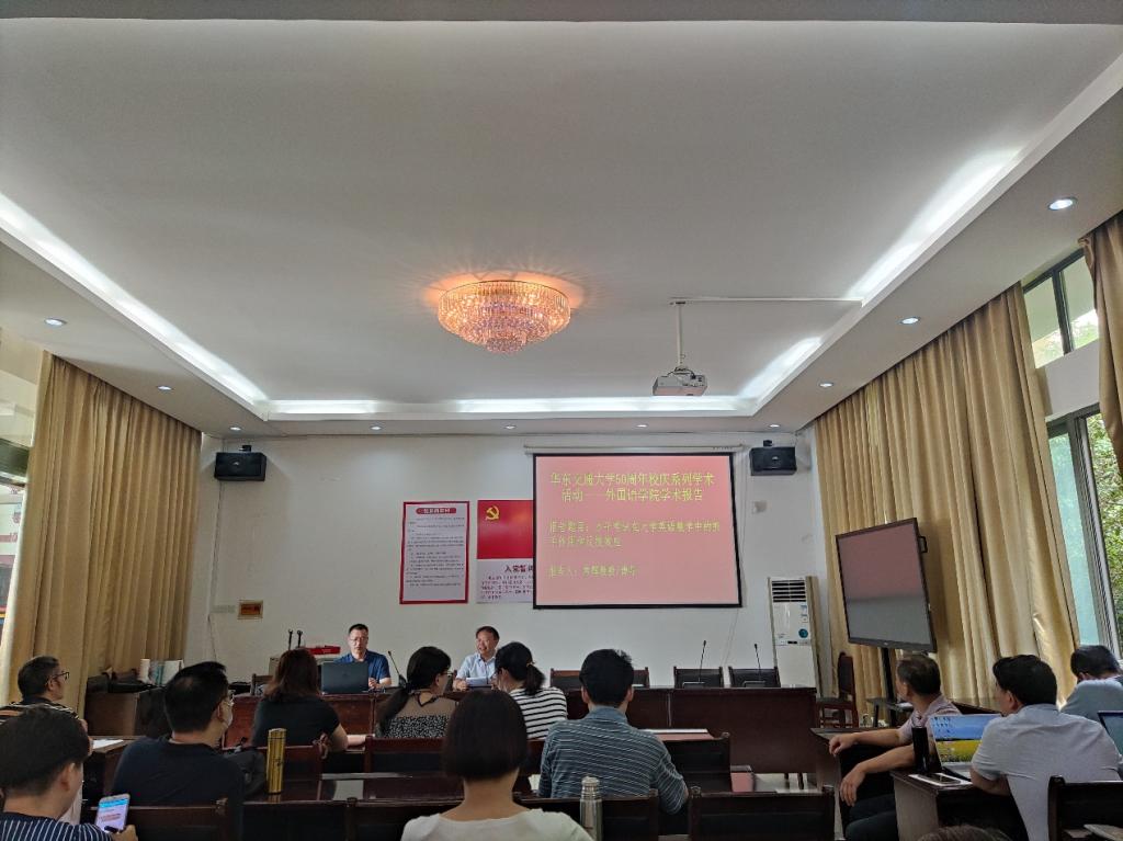 2021年6月24日,上海交通大学外国语学院博士研究生导师、常务副院长常辉教授应邀参加“华东交通大学50周年校庆系列学术活动”,并在外国语学院102会议室作“水平考试在大学英语教学中的抓手作用和反拨效应”的学术报告。报告会由华东交通大学外国语学院副院长袁平华教授主持,外语学院教师和学生积极参加此次报告会。该学术报告在外国语学院师生中引起极大反响,形成强烈共鸣。