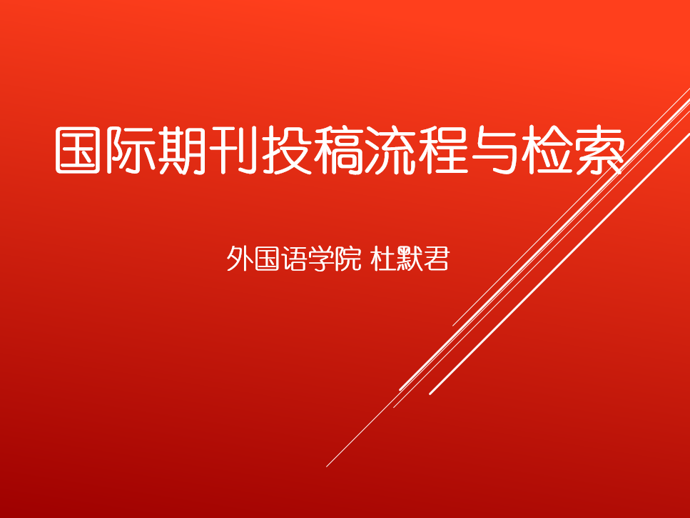 2021年9月19日下午在教25栋221室,外国语学院翻译研究所邀请学院杜默君老师于做了一场关于国际期刊投稿流程与检索的主题讲座。