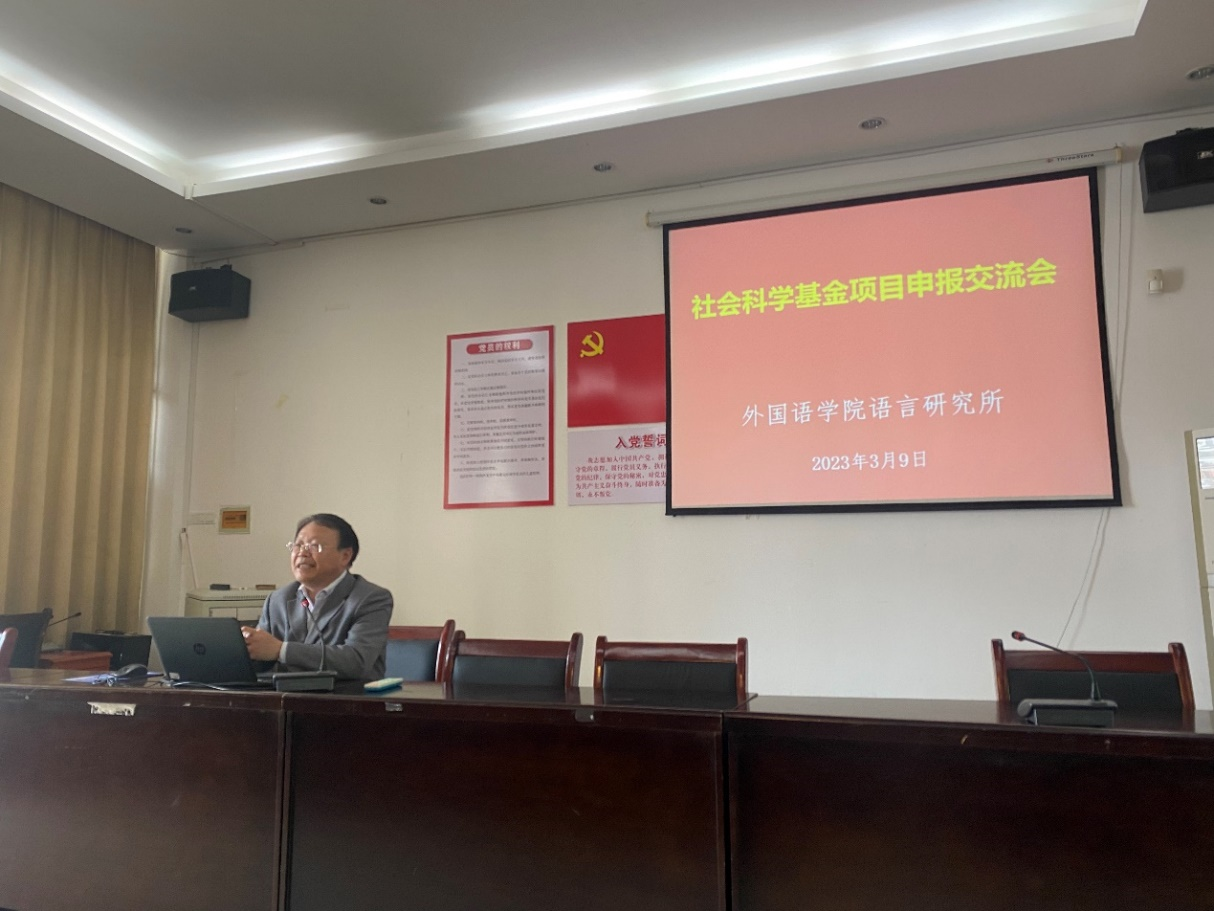 2023年3月9日下午,外国语学院语言研究所所长袁平华教授主持召开了社会科学基金项目申报交流会。学院教师积极参与,多位老师分享了各自的项目申报选题,其他老师也对这些项目选题交流了自己的看法,并提出了许多宝贵建议。