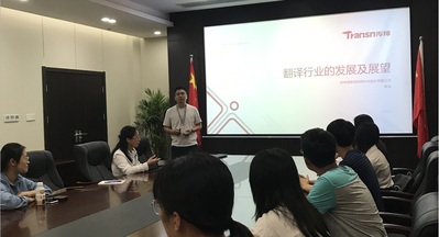 618日,在传神语联网网络科技股份有限公司,张华总经理介绍了翻译行业的发展及未来展望,分析了“一带一路”背景下的语言服务巨大市场需求,深入探讨人工智能时代 “人机共译”(AICT)模式下语言服务人才基本能力和要求。随后,同学们现场观摩了传神语联网网络科技股份有限公司的翻译、质检、技术等部门。
