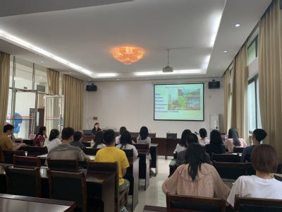 唐斌院长详细介绍了学校发展历程、教学设施以及学院办学历史、师资力量和专业课程特色,希望同学们加强学术涵养、提高文化担当,把握机会,争做优秀的“语言服务者”。