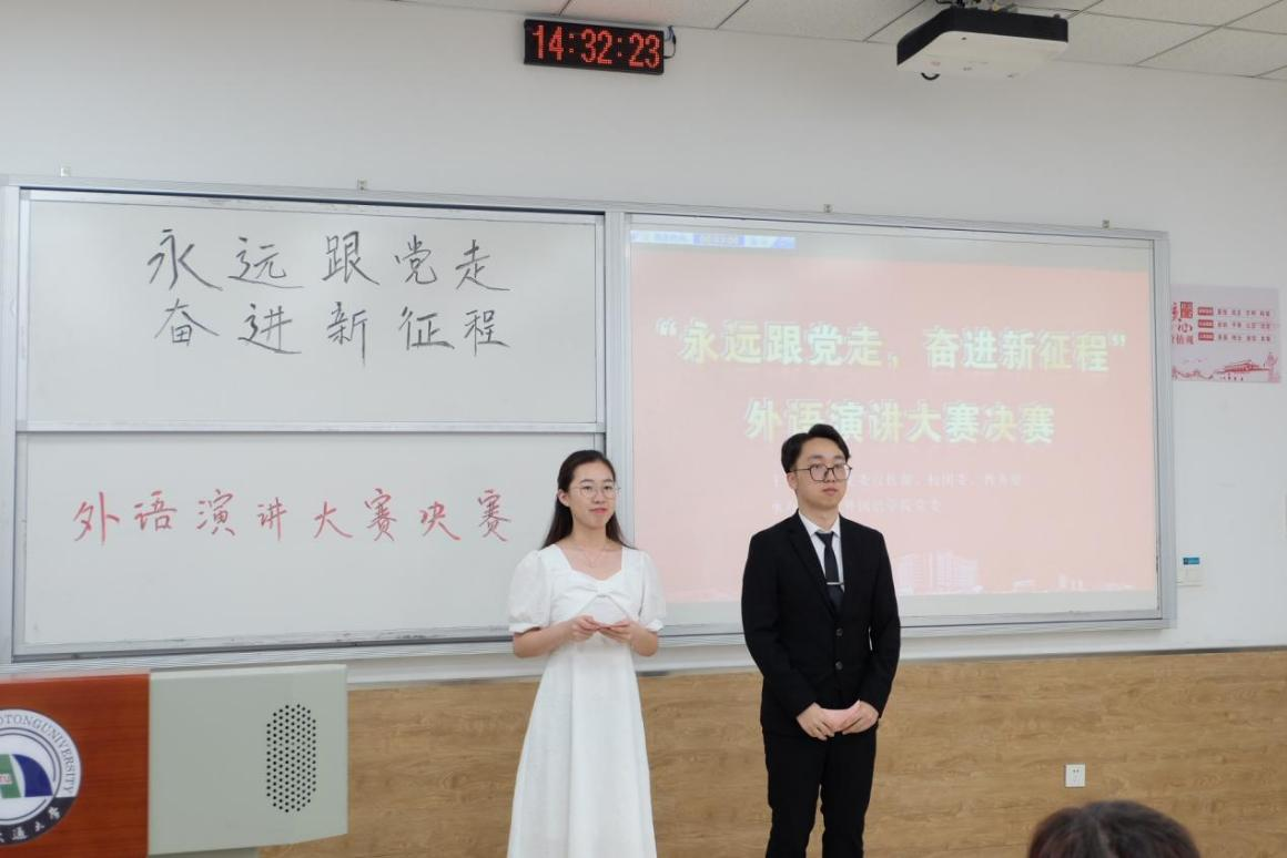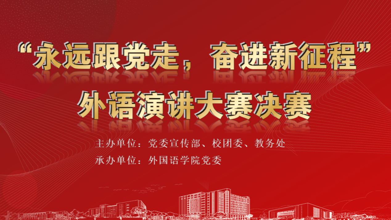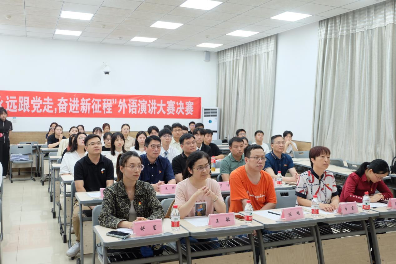 为扎实开展好主题教育,深入学习贯彻党的二十大精神,增强青年学生对党的认同感和向心力,激发青年学生爱党向党热情,激励青年学生勇担时代使命、阔步复兴征程,进一步提高学生外语运用能力和水平,以赛促学,以赛促教。校党委宣传部、校团委、教务处和外国语学院党委面向全校学生联合举办“永远跟党走,奋进新征程”外语演讲大赛。2023年6月8日14:30,“永远跟党走,奋进新征程”外语演讲大赛决赛在教25-108教室顺利举行。