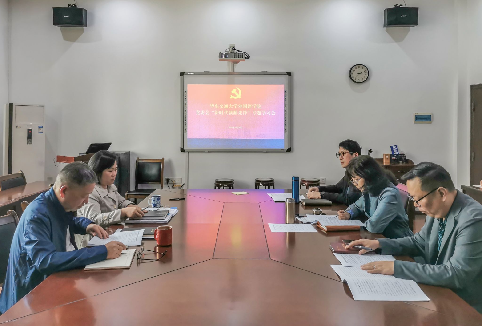 为深入学习宣传贯彻党的二十届三中全会精神和全国教育大会精神,全面贯彻落实习近平总书记考察江西重要讲话精神,充分发挥“新时代赣鄱先锋”先进典型的示范引领作用,切实将先进典型事迹的精神力量转化为立足岗位、建功立业的实际行动。10月28日,外国语学院党委召开“新时代赣鄱先锋”专题学习会,会议由院党委书记薛先庆主持,全体党委委员参加会议。
