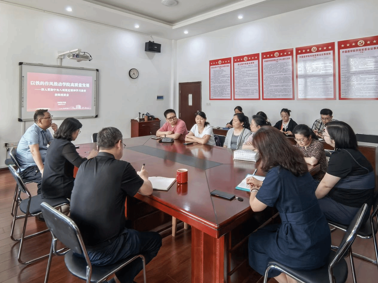 5月26日,外国语学院党委书记薛先庆主持召开深入贯彻中央八项规定精神学习教育征求意见座谈会,充分听取教师代表对学院党委班子和班子成员贯彻中央八项规定精神和整改整治工作的意见建议。院长陆秀英,副院长单伟红、李星出席座谈会。