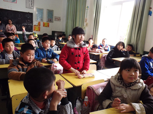 此次支教由外国语学院世纪英才二期学员周玲、刘潇帅等人相互配合,共同完成。周玲首先为同学们介绍了雷锋同志,并向同学们提出相关问题,同学们踊跃举手与老师分享雷锋事迹;王凯巍更是拿出绝技,口琴独奏《红星闪闪》,以琴声引领大家重温雷锋时代,激励着大家学雷锋,争优先;接着,刘姝希亦以她独特方式与同学们交流学习雷锋的感受,短短的四十分钟支教在刘潇帅,徐铮攀的猜游戏与英文歌曲欣赏中欢快地落下帷幕 !