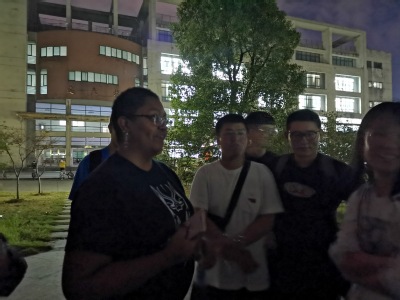 9月26号晚,由我院18翻译二班主办的英语角活动在外院小广场顺利举行。Amine、LaQuete、Drew三位外教应邀参加。