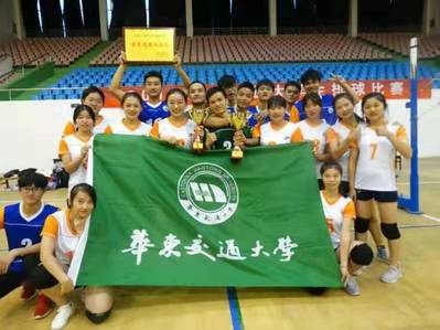 在2019年江西省大学生排球比赛中,此次出征的华东交通大学公体排球队由来自外国语学院、电气学院、信息学院等九个学院的二十一名排球队员组成,其中外国语学院有七名女子排球队员积极报名参加。他们秉承不抛弃、不放弃的信念,在赛场上团结协作、奋力拼搏,既为大家展现了一场场精彩的比赛,也为我校树立了扎扎实实,勤学苦练的排球队形象。经过激烈的比拼后,最终取得2019年江西省排球比赛甲组男子冠军、甲组女子亚军的辉煌战绩。