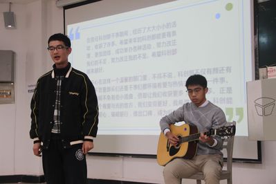 首先,各个学生会部门通过展示精心准备的PPT,向大家详细介绍了他们的工作内容以及分享工作心得、展示干事风采。一张张幻灯片的转换,一项项大数据的展示,传递了12个部门在不同工作中同样的工作精神,即齐心协力,共创佳绩。除了介绍工作内容之外,一些部门还为我们带来了精彩的节目。比如,科创部的吉他弹唱、外语电台的手势舞、组织部的心理情景剧。组织部的心理情景剧,以一种幽默的方式将组织部的工作内容更加形象具体地呈现在我们眼前:督促青年大学习、例会点到、交接团委任务……每一个画面都体现着他们的工作宗旨:全心全意为学院服务。