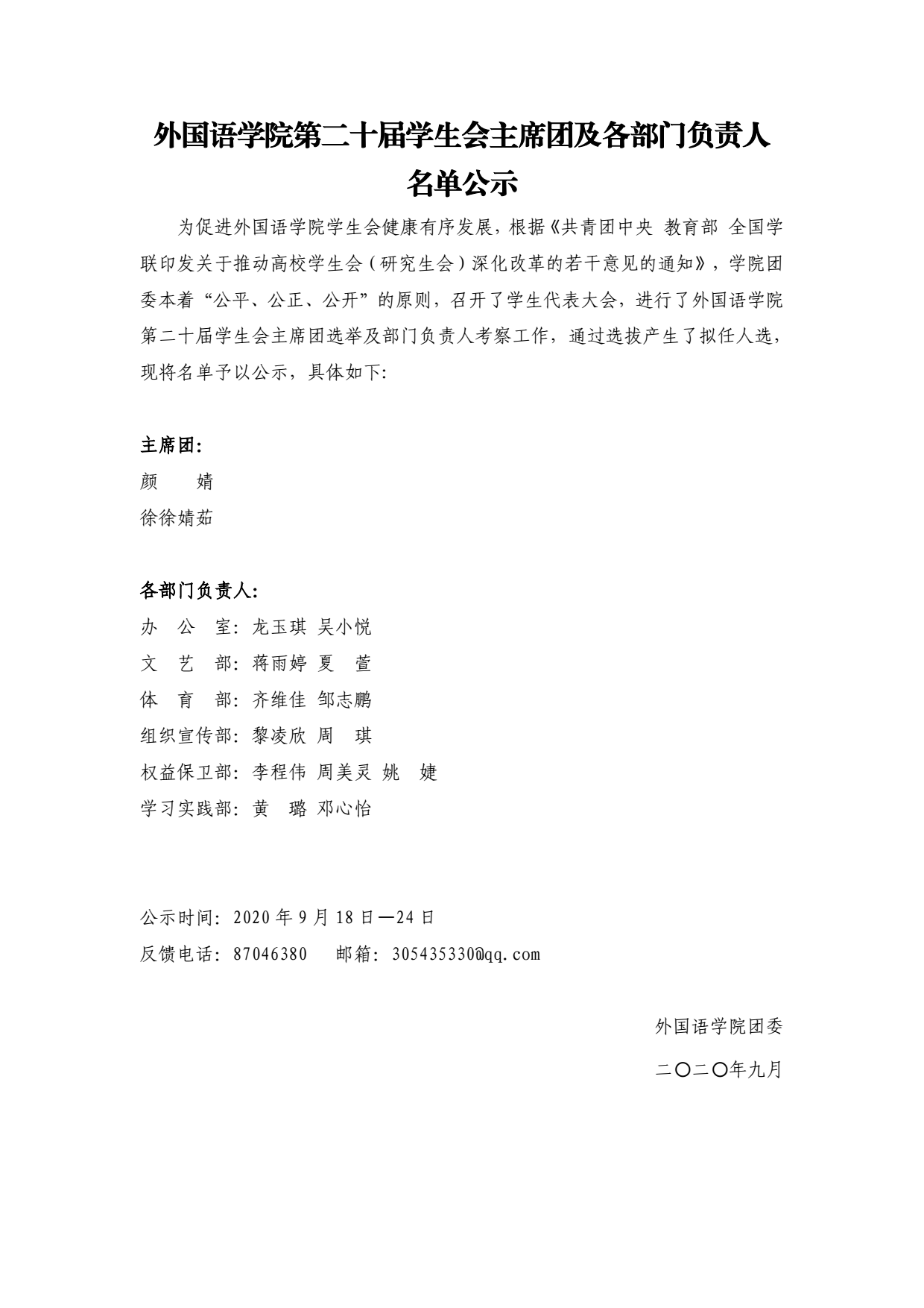 上一条:外国语学院第二十一届学生会主席团及各部门负责人名单公示