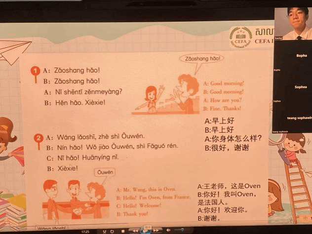 第一天上课的时候我其实很紧张,由于之前并没有相关经验,所以担心自己的教学方法不能很好的被学生接受,也担心语言的隔阂会影响教学效果。但是得益于课前大量的准备,课程进行得十分顺利。而且令我十分惊喜的是我的学生有不错的中文基础,因此我也针对学生的水平改变了教学方法,更多采用情景对话的形式而不是生硬的讲解教材上的语句。