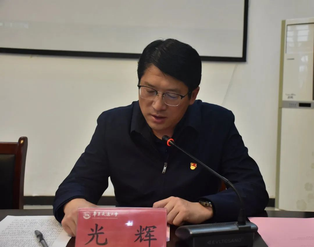 光辉传达习近平总书记在中国人民大学考察时的讲话精神。习近平强调,“为谁培养人、培养什么人、怎样培养人”始终是教育的根本问题。要坚持党的领导,坚持马克思主义指导地位,坚持为党和人民事业服务,落实立德树人根本任务,传承红色基因,扎根中国大地办大学,走出一条建设中国特色、世界一流大学的新路。随后,光辉领学《新时代高校教师职业行为十项准则》。《新时代高校教师职业行为十项准则》制定高校教师行为准则,明确新时代高校教师职业规范,针对主要问题、突出问题划定基本底线,是建设政治素质过硬、业务能力精湛、育人水平高超的高素质教师队伍的重要举措,也为教师严格自我约束、规范职业行为、加强自我修养提供基本遵循。