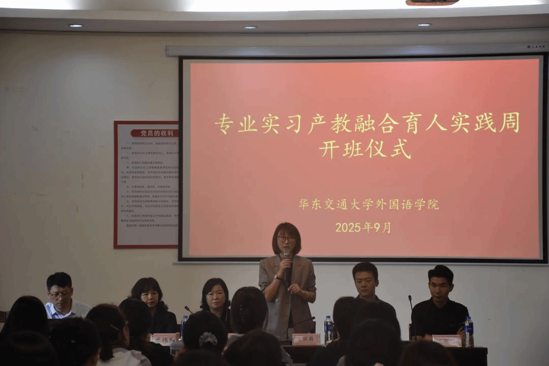 为帮助有志于从事国际贸易领域工作的同学们掌握海外短视频营销全流程技能,顺应全球贸易格局调整趋势,外国语学院于9月22日上午8:00在教15栋102会议室举办专业实习产教融合育人实践周开班仪式。北京学研汇智网络科技有限公司CEO陈丽莉,光轮出海创始人、前TikTok国际化电商AM高嘉志,光轮出海运营网络搭建与视频运营创造负责人张兴顺,外国语学院院长陆秀英,副院长单伟红,党委副书记光辉及大三、大四学生参与开班仪式。本次仪式由副院长单伟红主持。