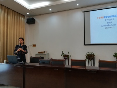 2019年6月13日下午,华中科技大学外国语学院博士生导师、国务院政府特殊津贴专家徐锦芬教授应邀莅临我院讲学。徐教授在外院楼102报告厅作题为“外语课堂教学设计理念及其应用”的学术报告,讲座由副院长袁平华主持,外语学院全体教师参加此次讲座。