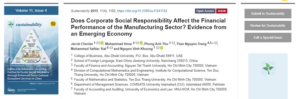 近日,我校外国语学院外籍教师Muhammad Umar博士以第二作者在国际期刊《Sustainability》发表高水平学术论文《Does Corporate Social Responsibility Affect the Financial Performance of the Manufacturing Sector? Evidence from an Emerging Economy》(企业社会责任会影响制造业的财务绩效吗?——来自新兴经济体的证据)。