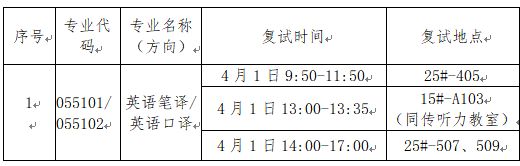 复试时间、地点及方式详见下表。