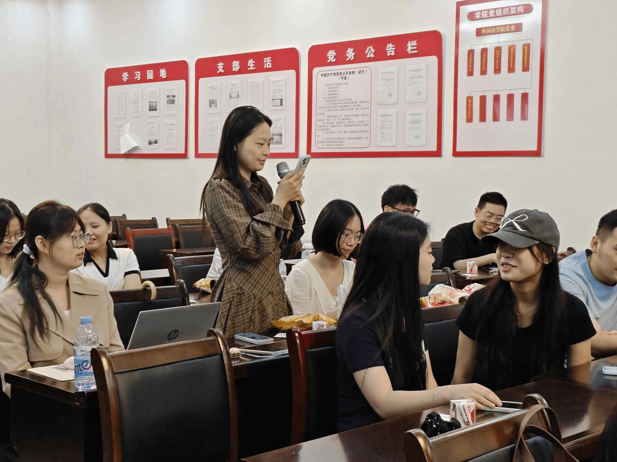 为提升同学们的文学翻译理论水平和实践能力,促进跨学科研究和学术交流。2025年6月23日上午,外国语学院2024级MTI研究生举办了翻译沙龙,此次活动在外国语学院102会议室召开,邀请了外国语学院副院长李星、何善秀教授、刘庆雪教授和裘白莲老师到现场观摩指导。