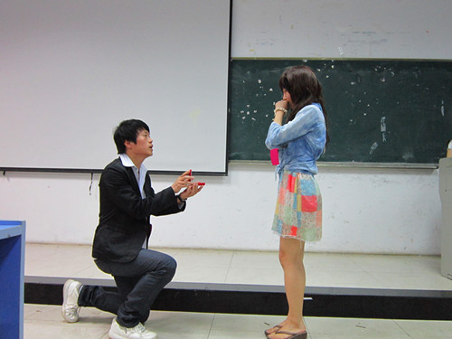 本站讯(记者肖家玮王露报道) 5月12日晚7点,由外国语学院外语社主办的“爱show”英语剧决赛在北区15栋116举行。经过初赛的角逐,共有6个班级进入本次比赛的决赛。外国语学院学工办主任吴正才、英语专业老师陈传仁及外教Patty、Yulia出席并担任了本次决赛的评委。一场场精心准备的英语剧华丽上演,给观众带来了精彩绝伦的视听享受。