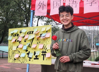 一句句暖心的叮嘱,一行行动人的情话,我院男生们纷纷在心愿墙上留下对女生们的节日祝福。“‘红彤寛摆掐腰衣,逸裙飘洒青春丽。’大家都知道我们学院男生很少,但是女生节,没有惊喜怎么行。我希望通过举办这次活动能够给女生们留下一个甜蜜又幸福的节日记忆,让校园里因为有她们的存在变得格外绚丽。”活动负责人之一,18级英西复语邹江说。