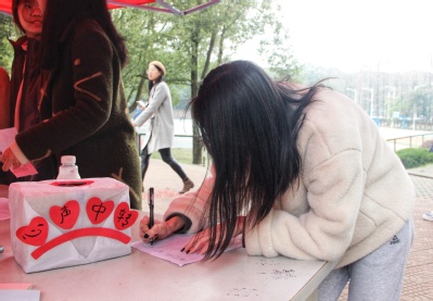 “心愿墙”、“幸运女神”、“心声中转”……中午12点,由我院礼仪队主办的女生节活动摊位前人来人往,热闹非凡。现场工作人员介绍说,你可以匿名留下一份礼物或者一段祝福,我们会为你转达。“这次活动很有意义,不仅加深了我对美妆、健康、安全等方面的了解,还让我明白怎样‘内外兼修’提高自己,真的收获满满。”18电气九班的秦潇开心地说道。