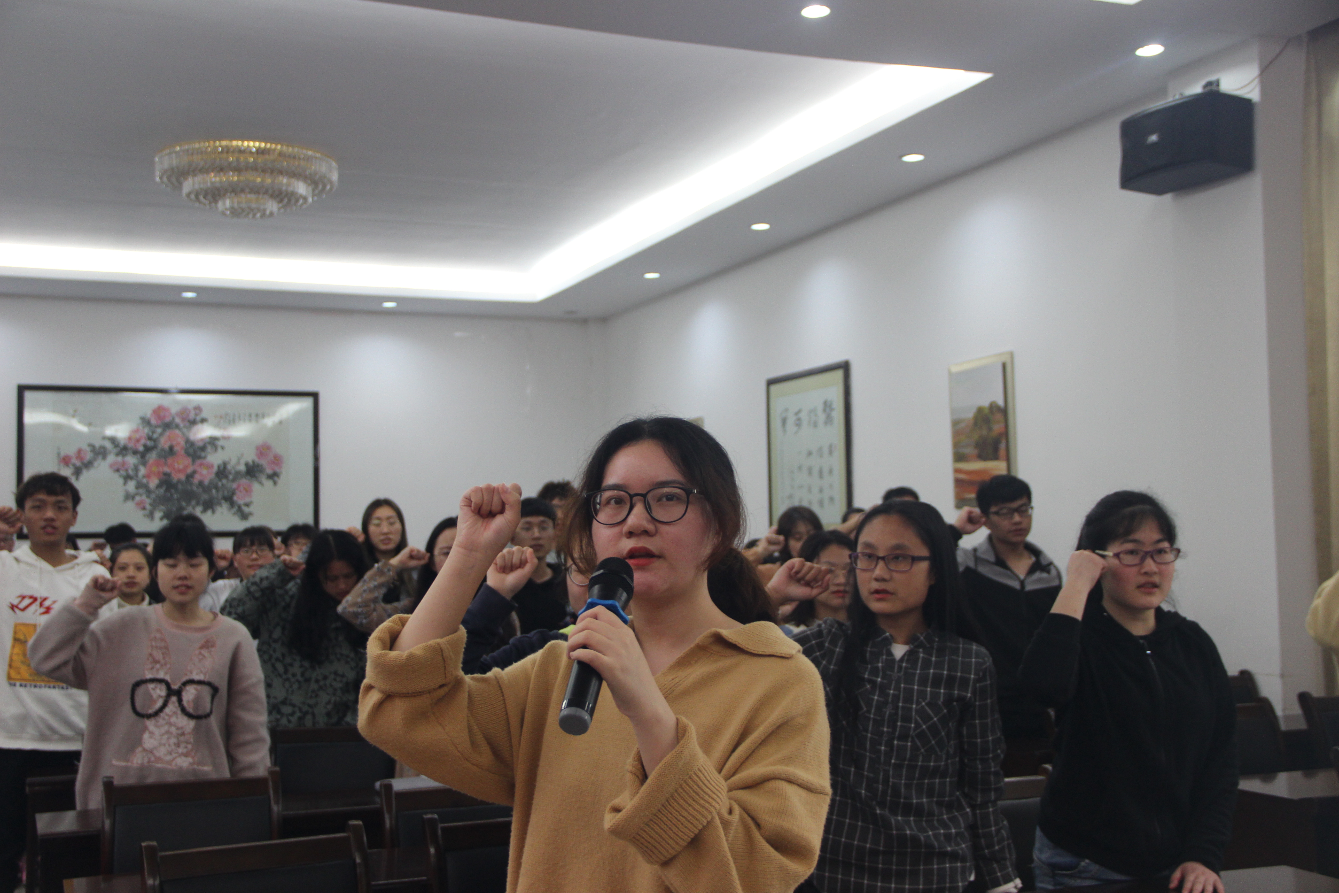 我院院党委副书记王朗表达了对青年团员美好的祝愿。他希望在座的团员青年增强团员意识,让团员意识根种在脑海。在这个特殊的节日里,王朗书记祝福同学们青春不老,节日快乐。他说时代赋予我们实现两个一百年计划、中国梦的历史责任,作为当代青年要把先辈们的爱国主义精神传承下来,把爱国心,报国情化之为我们奋发有为的精神动力,向上,向善,向学。团员青年们既要脚踏实地,增强本领,又要仰望星空,有心系家国的情怀,始终坚持与党同心,与人民同行,把我的梦,中国梦紧密的联系在一起,让我们的青春年华在实现中华民族伟大复兴的岁月中焕发出绚丽的光彩。最后全体高唱中国共产主义青年团团歌《光荣啊,中国共青团》。