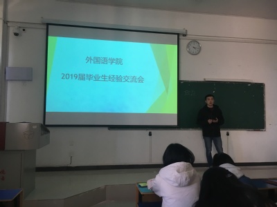 5月6号下午,外国语学院2019届优秀毕业生经验交流会在14栋110教室举行,大会邀请了15级英语(国际贸易)专业杨晓奇、王运华、吴淑霞、黄惠芬,15级翻译专业钟雨芹、向羽等部分优秀的大四学长学姐们到场分享经验,学院大二大三学生到场聆听,交流会由张颖老师主持。