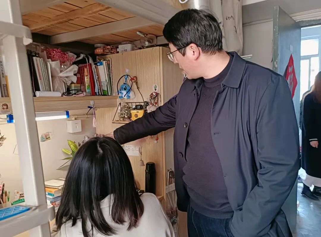 2月25日,院党委副书记光辉、学工办副主任兼团委副书记熊弯、钟雪倩老师以及兼职辅导员刘源深入学生宿舍巡查。