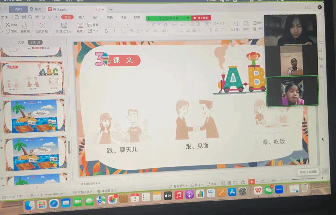 虽然我们只是通过屏幕进行交流,但与学生的互动让我们建立了亲密的师生关系。尽管我们身处不同的国家,但这种跨文化的友谊将持续下去,超越教室之外。我相信这个经历不仅是一次教学活动,更是一次宝贵的人生体验。