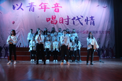 据了解,今年外文大合唱以“年代”为主题,我院十八个班级分别以80年代、90年代和00年代为主线,用“别具一格”的方式唱响各个时代“独特”情怀。在紧张而欢乐的气氛中,由我院舞蹈队带来优美又动感的开场舞正式拉开了“聆听”时代之声的帷幕。16级翻译二班为大家带来的歌曲Auld Lang Syne让观众身临其境,那些斑斓的年华、青梅煮酒的往事、过往的时光都被一一回忆;18级英西复语演唱的歌曲Nothing’s Goanna Change My Love For You则为晚会增添了一丝别样的欢乐;16级国贸二班演唱的Night Changes完美的吟唱出了一个女孩与夜晚的故事;律动的Last Chirstmas、动听的Heal The World、摇滚与抒情结合的Take To Your Heart等歌曲带给大家“惊喜连连”。高亢嘹亮的歌声、激动自信的表情、精彩繁复的形式给现场观众留下了深刻的印象。