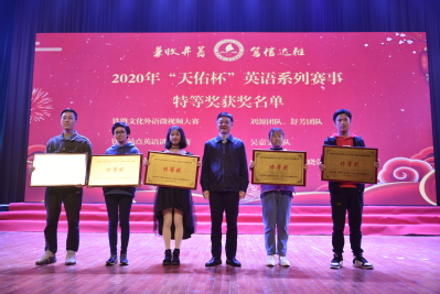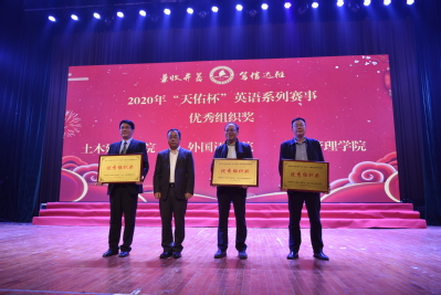 当晚,“廿念不忘 思源致远”二十周年院庆晚会暨外文大合唱决赛在南区礼堂成功举办。校党委书记万明、党委副书记肖长春出席并分别颁发“天佑杯”英语系列赛事特等奖和优秀组织奖。