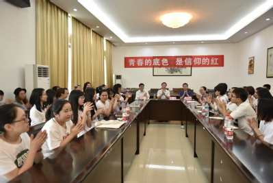 青春有梦敢拼,青春的底色是信仰的红。八点半左右,张玉清和同学们走进外国语学院102教室,参加“青春的底色,是信仰的红”主题团日活动。在活动开始前,张玉清问起了班级情况,在了解到全专业有57名同学时,他开心地介绍自己道:“那我就是58号,你们的玉清同学。”并分享了自己的学习经历。他感慨大学时光对自己的深远影响,勉励同学们向更高更远的目标出发。师生们还共同观看了纪录片——《厉害了,我的国》,并交流了自己的观影感受。