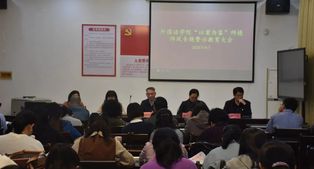 为了进一步加强我院教师师德师风建设,全面提升教师队伍素质,动员全院教职工树师德、立师表、铸师魂、强师能、正师风,以饱满的工作热情和一流的工作业绩,推动学院又好又快发展,外国语学院于4月13日下午在博雅楼102会议室召开师德师风专题大会。本次会议由外国语学院党委副书记光辉主持,外国语学院全体教职工参会。
