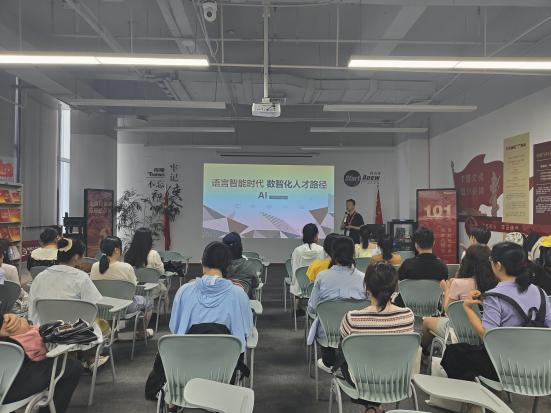 6月21日,同学们到传神语联网公司观摩学习。传神武汉总部教育事业部资源总监靳伟首先为同学们带来了一场题为“语言智能时代,数智化人才路径”的讲座,靳总表示,大数据、人工智能等技术加速发展,为我国企业的数智化转型带来了历史性的发展机遇,翻译公司也是如此。ChatGPT等语言智能技术、海量的真实语言数据、超大规模数据分析与机器学习技术等,都给翻译带来了新的资源与方法,为翻译技术创新提供了重要基础。同学们应拥抱语言智能,掌握语言智能的相关知识,努力成为高端的外语人才。