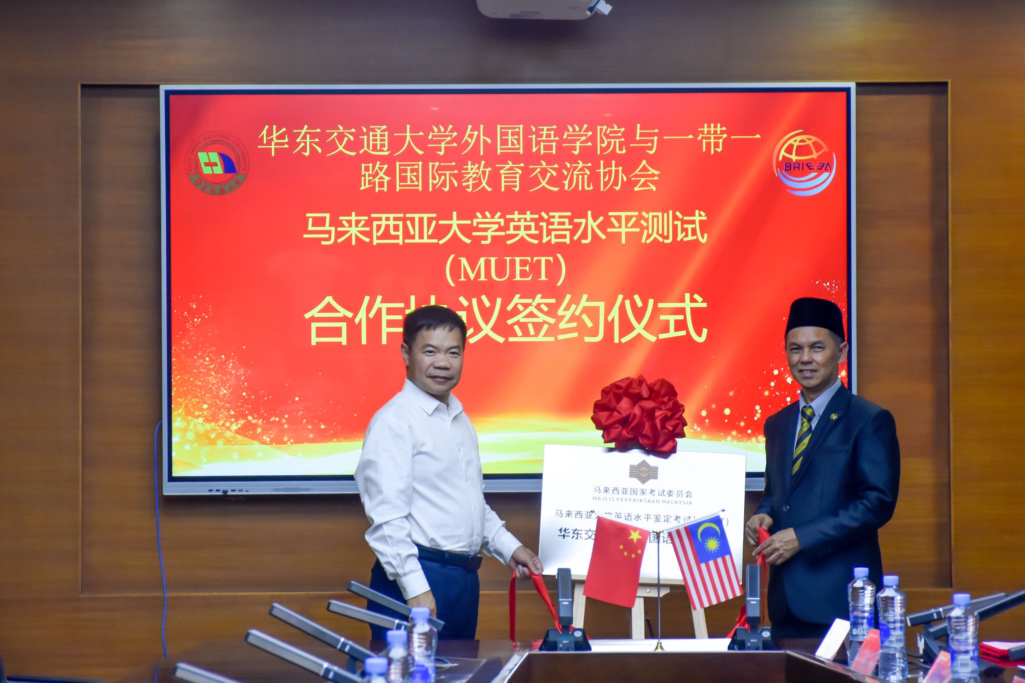 2024年10月15日,马来西亚大学英语水平测试(MUET)合作协议签约仪式在我校举行。马来西亚教育部考试委员会首席执行官阿德南、一带一路国际教育交流协会执行会长赖辉煌,华东交通大学副校长杨辉等参加签约仪式。仪式由外国语学院院长陆秀英主持。