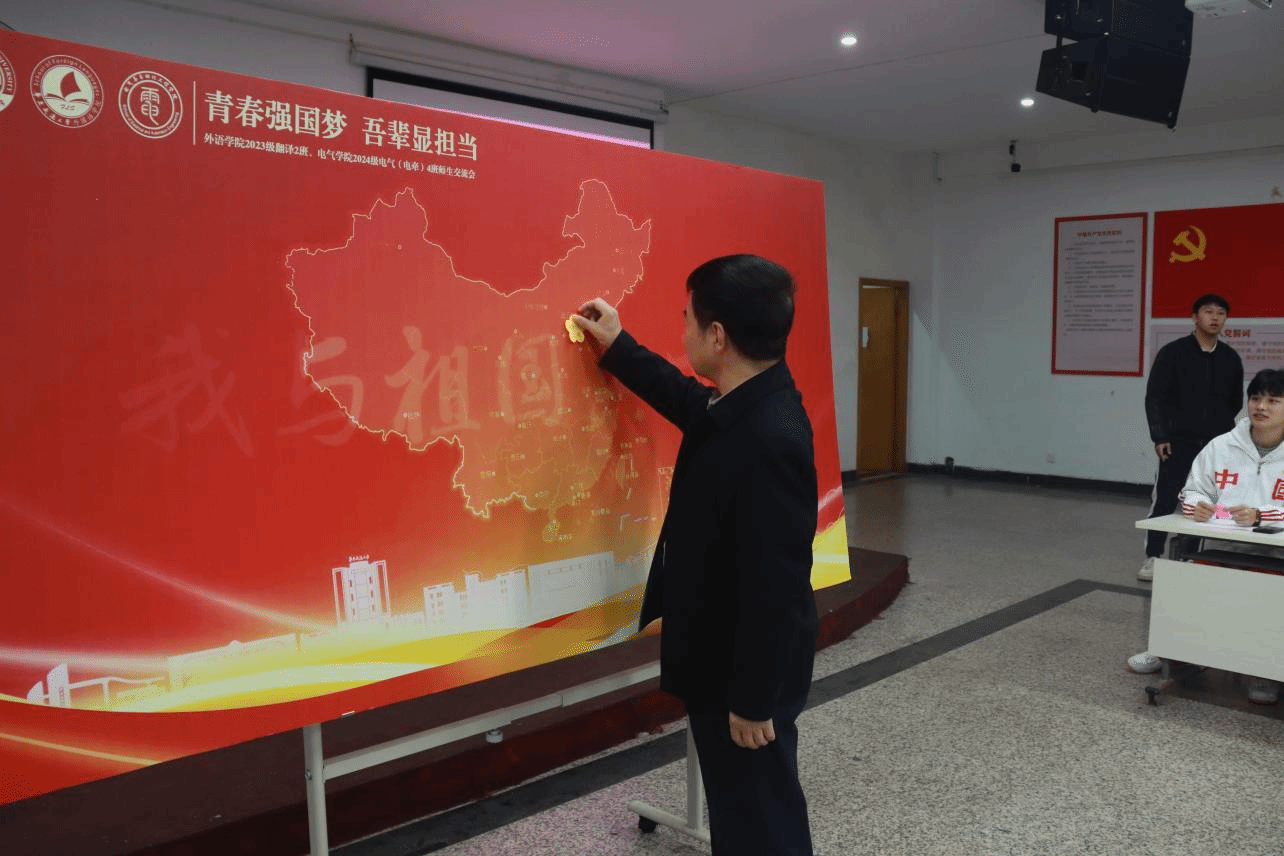 为落实立德树人根本任务,加强大学生思想政治教育,搭建校领导与学生沟通平台,了解学生所思所想所盼,外国语学院和电气与自动化工程学院于11月25日下午在南区天佑会堂联合开展“青春强国梦,吾辈显担当”主题班会。副校长杨辉,外语学院院长陆秀英、党委书记薛先庆、党委副书记光辉,电气学院党委书记赵敏、党委副书记刘修财,辅导员郑伟、夏圣伟、王伟峰出席,外语学院翻译2023-2班和电气学院电气(电牵)2024-4班全体学生参加。