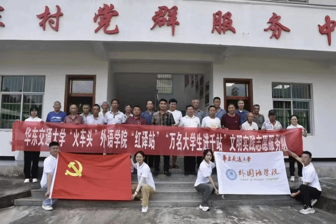 为深入学习贯彻习近平新时代中国特色社会主义思想,响应团中央暑期“三下乡”号召,7月1日至6日,华东交通大学外国语学院“红译站”社会实践队赴江西省抚州市金溪县,开展了一场融合红色传承、非遗体验与农耕实践的暑期大思政实践系列活动。实践队在团委副书记徐蒙蒙带领下,走访老党员感悟初心,体验农耕文化体会劳作艰辛,探秘当地非遗技艺,并走进红色遗址追寻历史足迹,在乡村热土上书写青春担当。